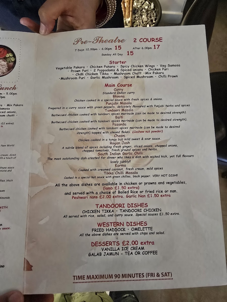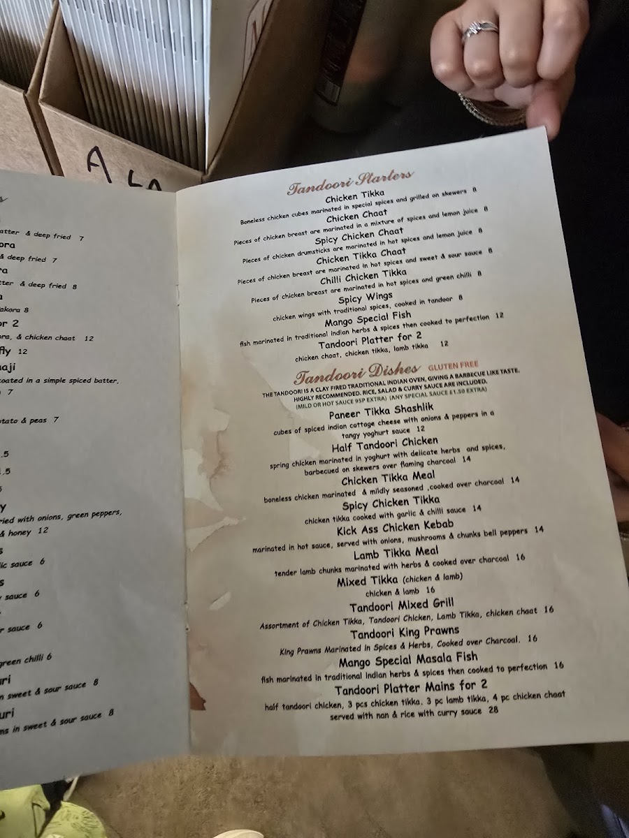 The Mango Restaurant Menu features a wide array of dishes, from tantalizing appetizers to sumptuous mains and indulgent desserts. Starters such as the crispy Samosas and Prawn Puri set the tone for a delightful meal. For the mains, dishes like the Butter Chicken and Lamb Rogan Josh are crowd favorites, known for their bold, aromatic flavors. Vegetarians will appreciate the diverse range of options, including the hearty Vegetable Biryani and the flavorful Aloo Gobi.